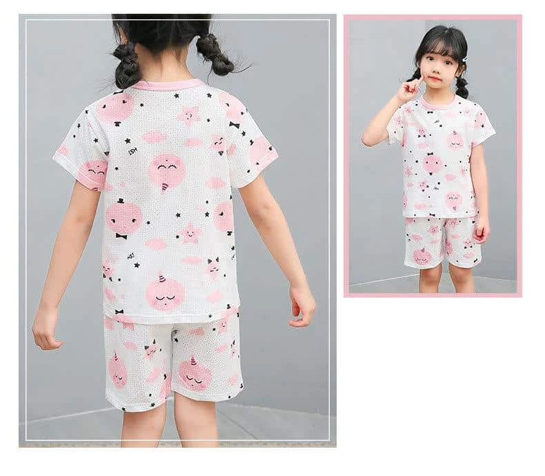 Pyjama Blanc Deux Pièces Avec Imprimé Dessin Animé Pour Petite Fille