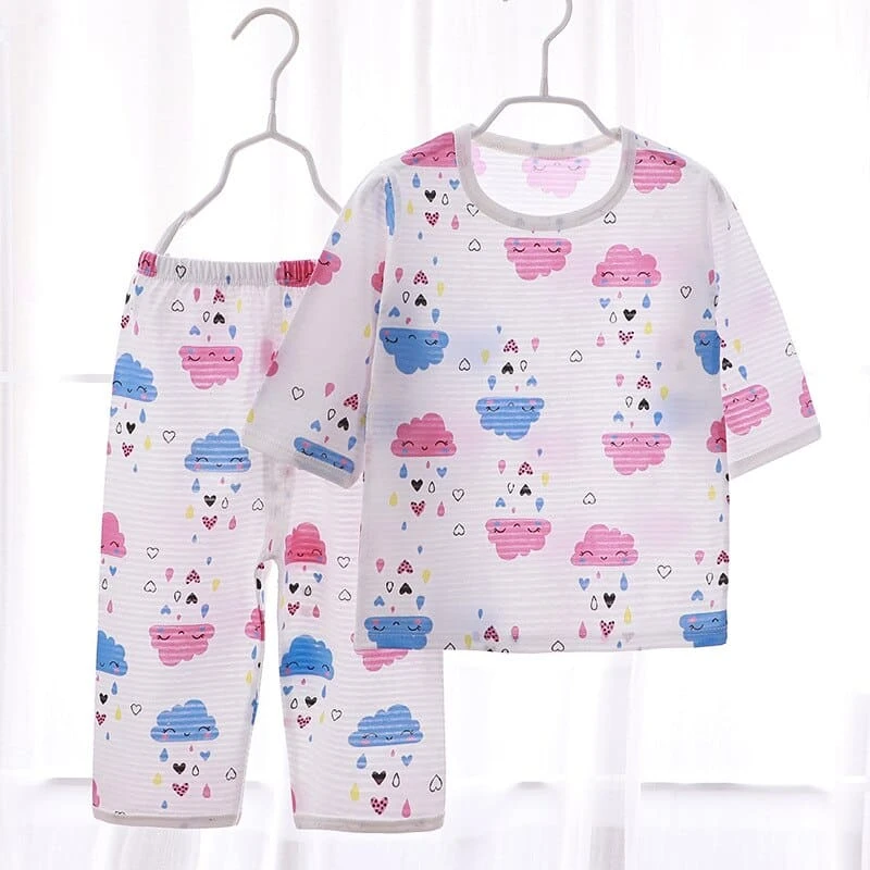 Pyjama D’été Blanc En Coton à Motif Nuages Pour Enfants