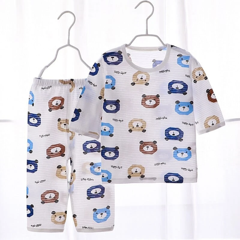 Pyjama D’été Blanc En Coton Motif Ours Pour Enfant