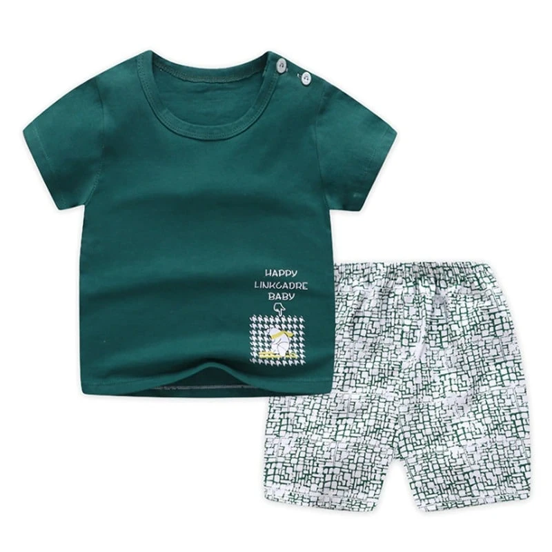 Pyjama Deux Pièces T-shirt Vert Et Short En Coton