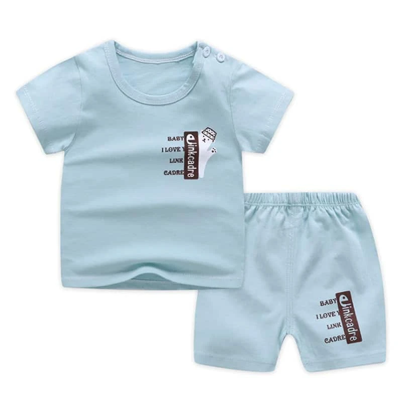 Pyjama En Coton à Manches Courtes Bleu Gris
