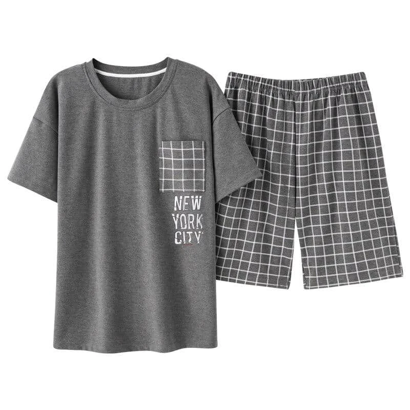 Pyjama Gris En Coton à Manches Courtes Pour Hommes
