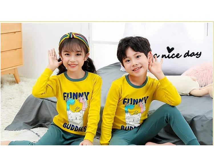Pyjama Printemps Avec Pull Jaune Et Pantalon Vert Pour Enfants