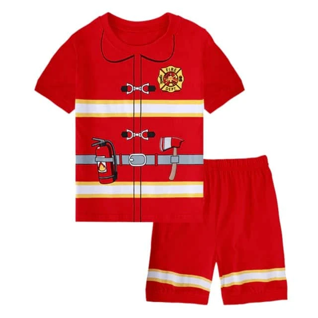 Pyjama T-shirt Et Short Pompier Pour Garçon